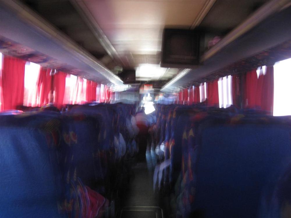 Pasada una larga hora me entró hambre. La noche anterior me había preparado un par de sándwiches de pavo y queso, pero la perspectiva de que estuviera prohibido comer en el bus y la posibilidad de empavar todo el hemisferio sur del mismo, hicieron que me esperase a la parada de Santiago. Paramos, como, subo al bus y me encuentro a mis jóvenes vecinos con un plato de un cuarto de pollo con arroz cada uno, servilleta, cuchillo, tenedor y un par de latas de refrescos gaseosos. Observo que no son los únicos: en este país se come, no hay duda. Proseguimos viaje en nuestro restauramóvil con renovados terrores de acabar rebozado en pollo por la izquierda. Dos horas más tarde, unas almas caritativas tienen a bien abandonar el bus y dejar algunos asientos libres. Devuelvo el taburete al revisor y mi culo en forma de donut y yo nos acomodamos en lo que a mí me parece el trono de Inglaterra.