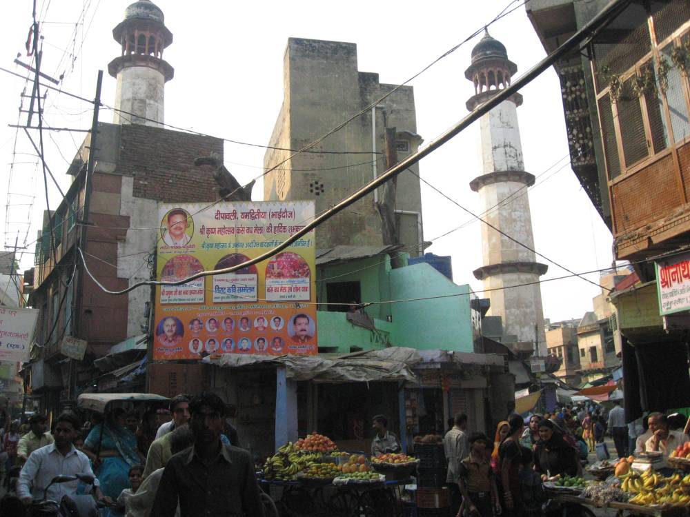 La India tiene siete ríos y siete ciudades sagradas y yo vivo en una de ellas. Una especie de Lourdes, guardando unas enormes distancias. La tradición cuenta que aquí nació el dios hindú Krishna y los peregrinos son multitud. Consecuencia: no es que sea absolutamente imposible encontrar alcohol, carne, huevos o pescado, es que está terminantemente prohibido tener cualquiera de estos elementos donde me alojo, por ejemplo. Mi actual dieta es rigurosamente vegetariana (salvo los lácteos) y para tomar algo de pollo o una cerveza (ay…) tienes que alquilar una especie de moto infernal que, después de una hora de baches y pitidos, te deja en la ciudad de Mathura, también sagrada pero menos, entre otra cosa porque allí hay una comunidad musulmana importante. Esto es Mathura…