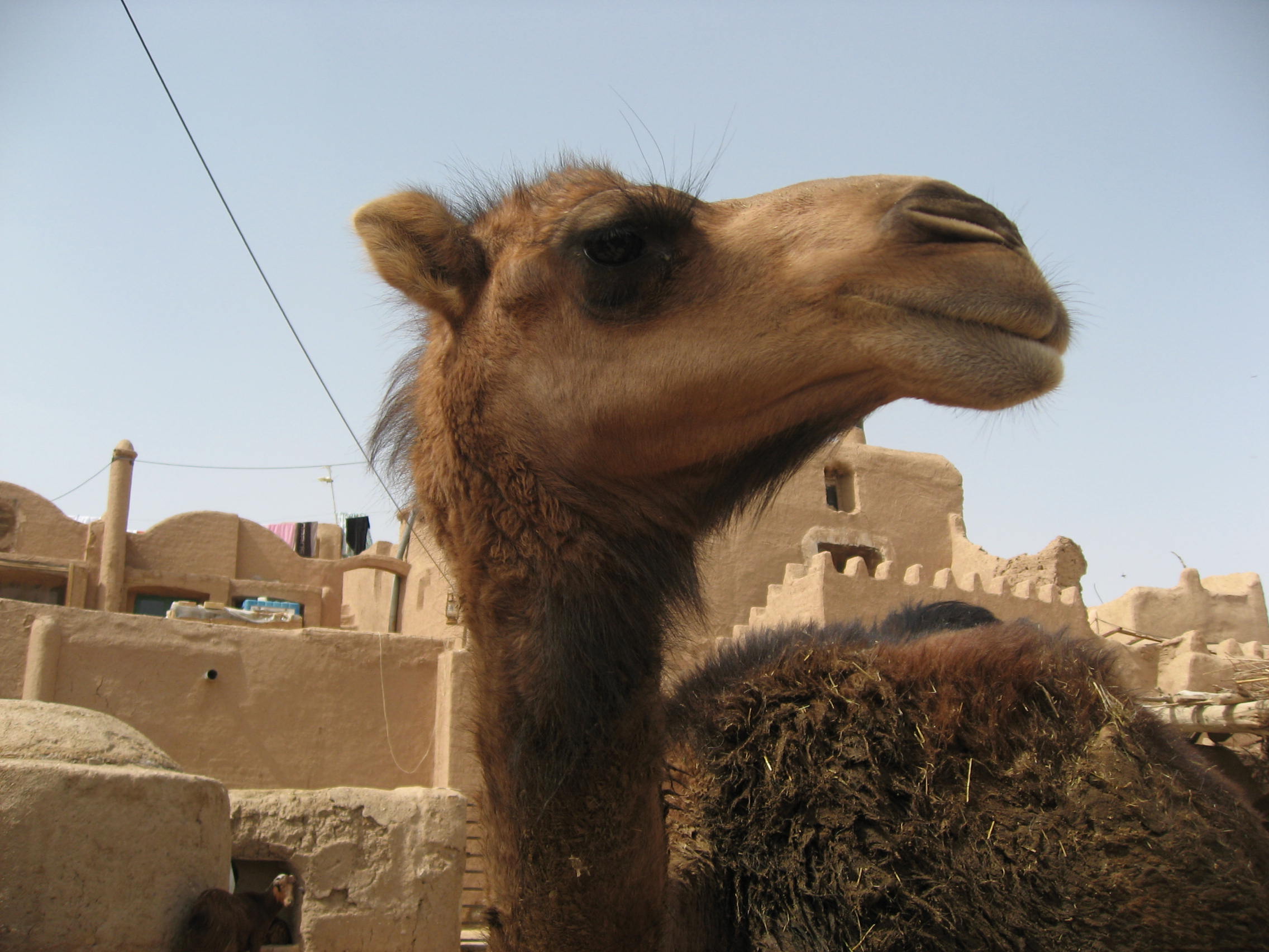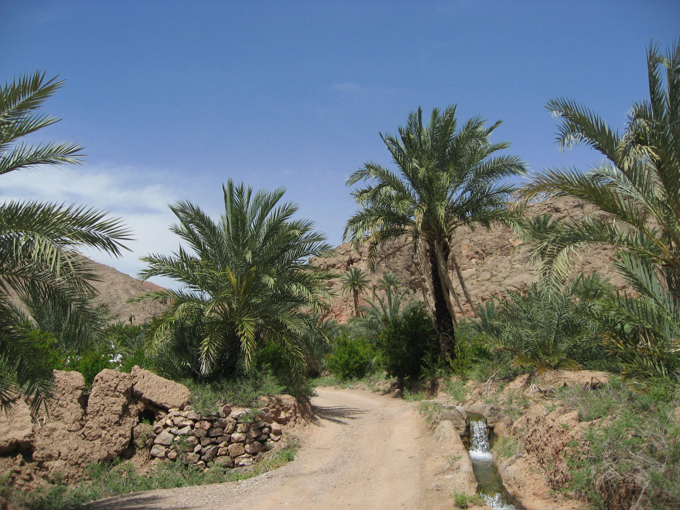 Todo es muy tradicional, como podéis ver, y dormir en el suelo por estos lares es algo natural. El edificio principal del hotel es que el sale detrás de Lolita (la camello) pero yo dormía en un edifico aparte, esa ventanita pequeña en el centro al fondo que se ve detrás de las cabras. No hay mucho que hacer, salvo pasear por el lugar entre palmeras…