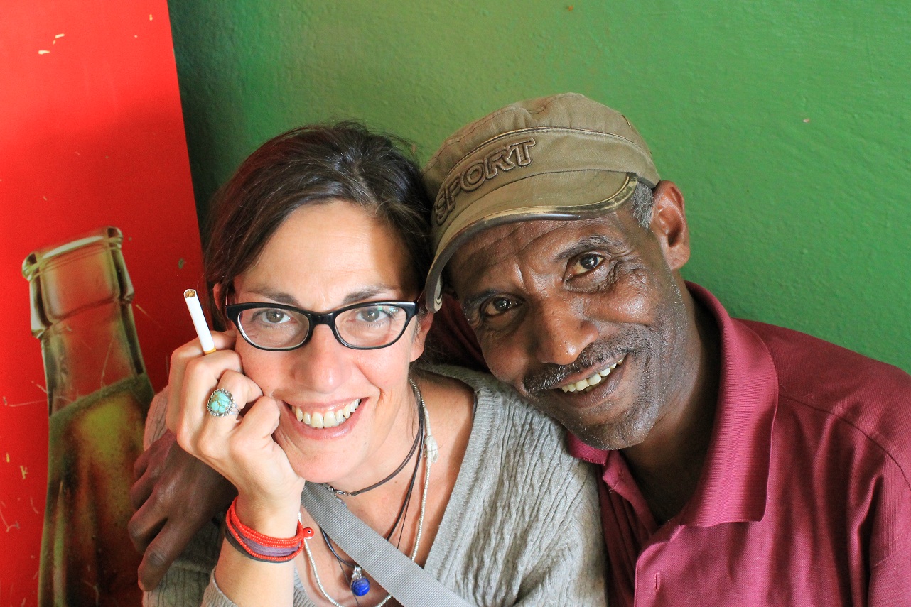 Ya al final del día encontré un hotel estupendo en una zona de la ciudad que me gustó y, como sólo me costaba diez dólares más, reservé para las dos noches siguientes. En la idea se me unió Gabi, una chica catalana maravillosa que está haciendo un viaje en camión desde Egipto hasta Sudáfrica y que conoce muy bien el país. Me presentó a un par de amigos suyos etíopes y al día siguiente nos fuimos todos juntos a pasear. Os presento a Gabi e Hiruye…amgos etiopia