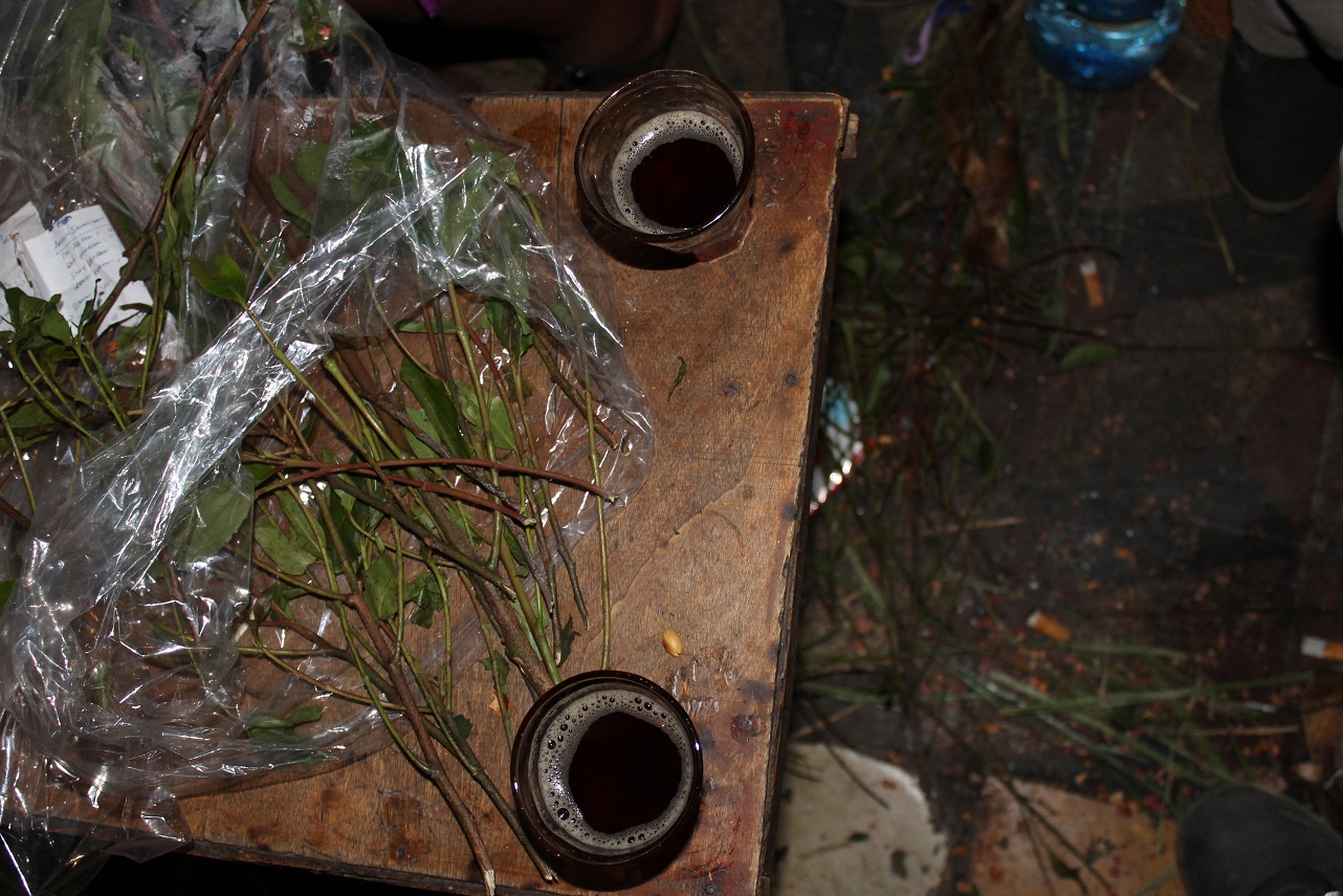 Después nos fuimos a tomar el chat. El lugar me encantó. Miradas calmadamente sorprendidas al ver a unos extranjeros entrar. Luz tenue. Suelo lleno de ramas mutiladas de hojas. Y un stand donde te venden ramos del producto envuelto en plástico para mejor conservación del mismo. El sabor es horriblemente agrio, pero se suaviza mucho si te lo comes con unos deliciosos cacahuetes que te ofrecen en bolsitas de papel. ¿Los efectos?. Todos a mi alrededor parecían estar tremendamente relajados pero yo, pese a tomarme unas cuantas hojas, no sentí nada ajeno a la habitual fascinación que me provocan las nuevas experiencias. Mi afición a los idiomas fue muy bien recibida por la clientela habitual que me enseñó feliz y complacida expresiones tan útiles como “chica bonita”, “cariño mío” y “dame comida”. Después de un delicioso té para quitarnos el sabor de boca, Gabi y yo nos despedimos. Os enseño una foto sólo de mi rincón para que os hagáis una idea. No me pareció prudente ni educado hacerlo del resto…chat y té etiopes
