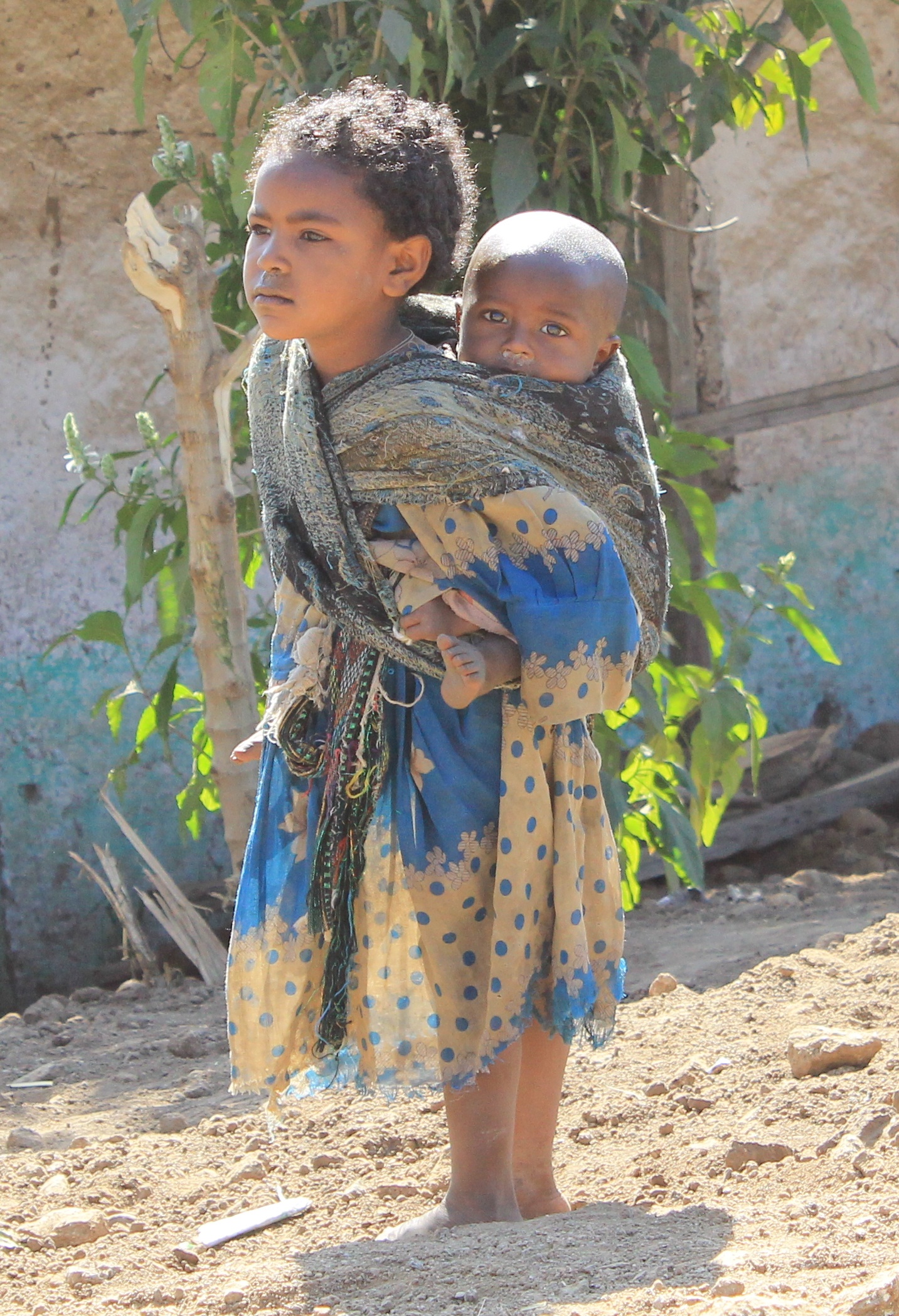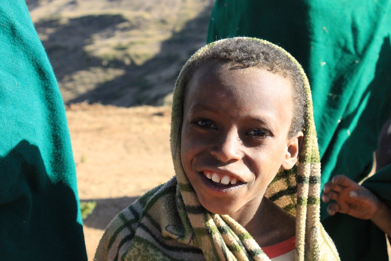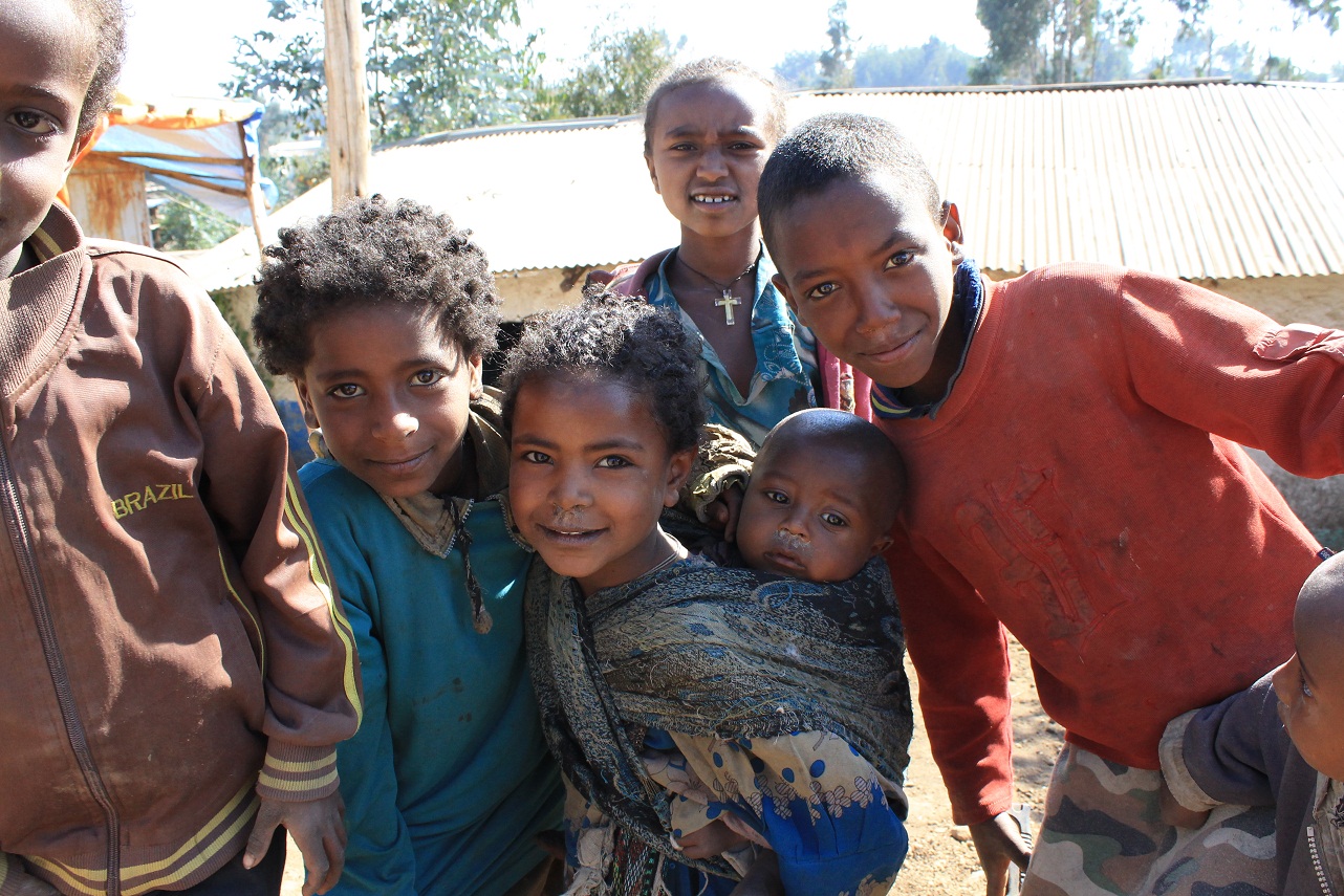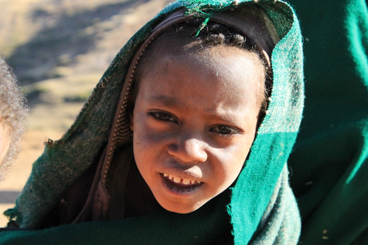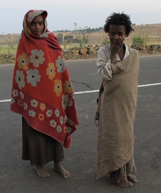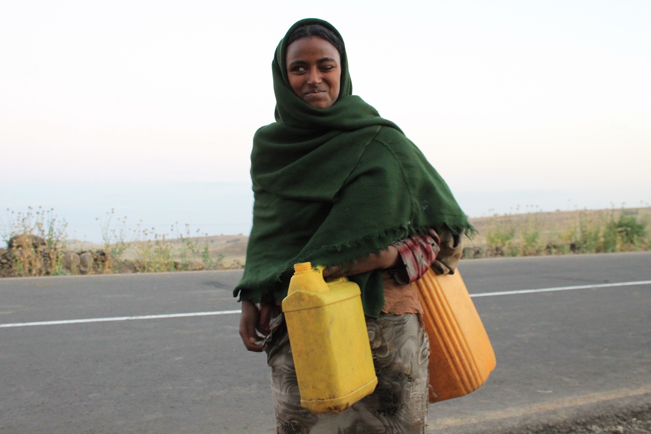 El viaje de vuelta se hizo muy pesado. Caminar durante 9 horas a 4.000 metros de altura durante dos días es especialmente cansado. El oxígeno es escaso y todo cuesta más esfuerzo. Además el sol te castiga sin piedad, así que ahí estaba yo al lado de mi ventanilla, con un color de piel rojo-gamba y un considerable dolor de cabeza. Para colmo de males tuvimos que parar dos veces para arreglar una rueda, pero como no hay mal que por bien no venga, durante una de las mismas pude aprovechar para jugar con unos niños y sacar fotos que ilustran lo que es la sociedad rural etíope. Los bidones amarillos son para transportar el agua de la que carecen las viviendas y constantemente se ven mayores y niños con ellos a cuestas. Pensad en ello cuando os cepilléis los dientes esta noche, cerrad el grifo mientras lo hagáis, y no dejéis que se escape ni una gota…