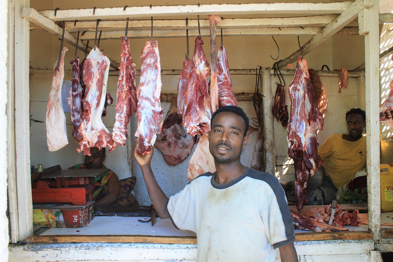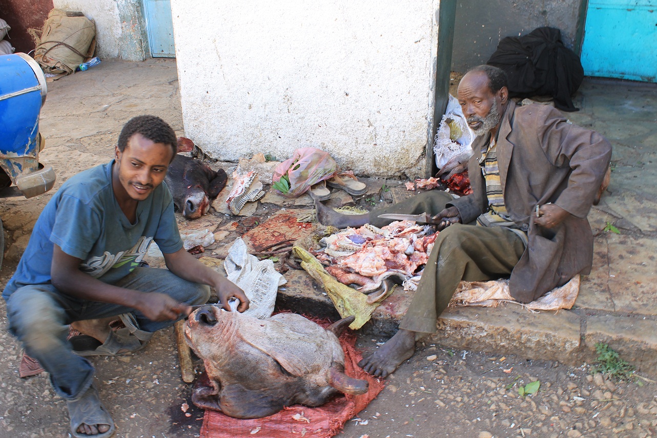 carne vaca etiopiaLa foto me costó 20 céntimos de euro de propina porque aquí nadie hace nada gratis y te gritan si sacas fotos. Uno no sabe si lleva una cámara o un kalashnikov…