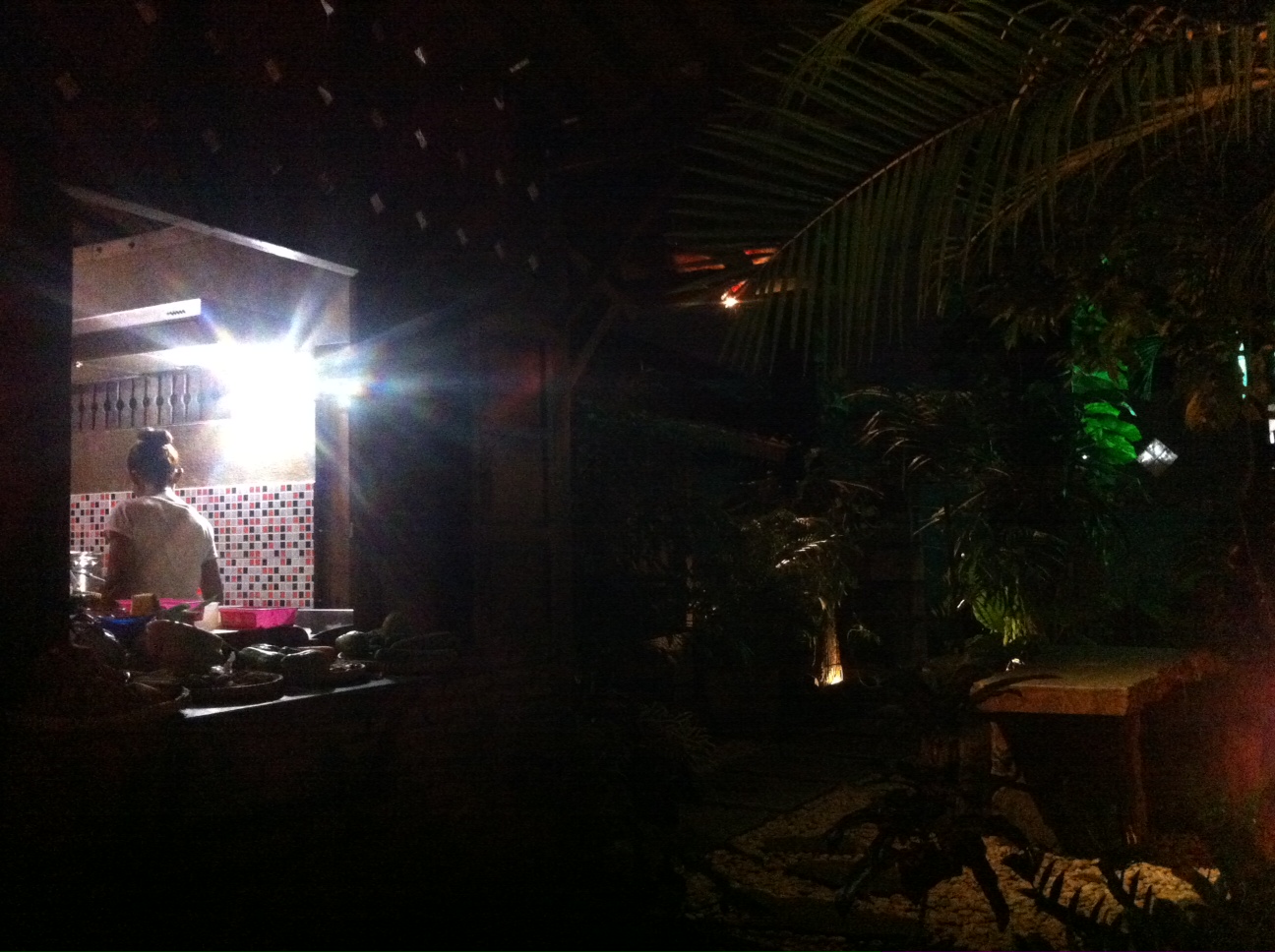 Por la noche me fui a cenar a un restaurante maravilloso. La gente en Indonesia es encantadora. Tal es así que manifesté mi intención de apuntarme en Bali a unas clases de cocina y me invitaron a pasar a la suya. Allí estuve yo probando de todo lo que iba saliendo de los fogones y tomando notas que impregnaban mi cuaderno de deliciosas manchas de aceite de palma…