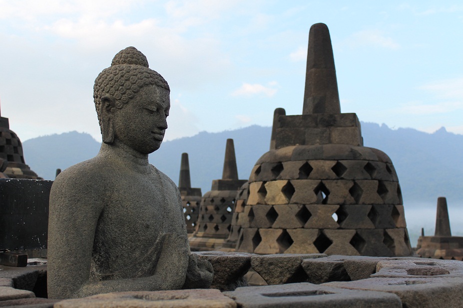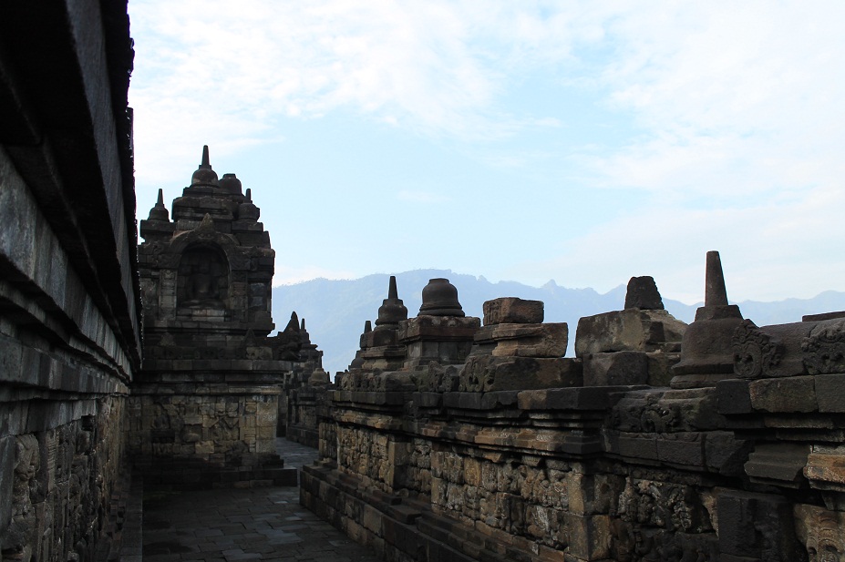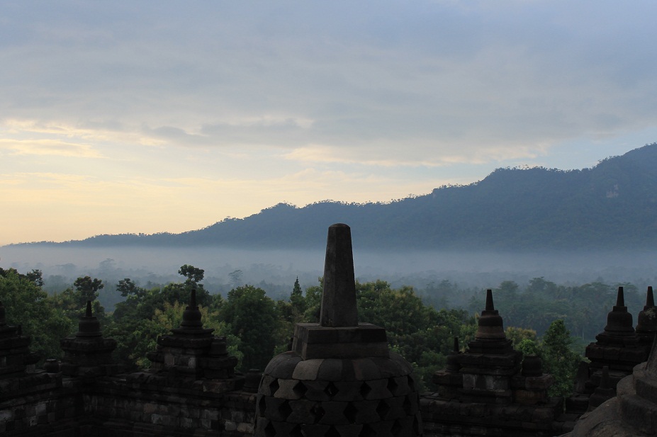 Enseguida encontré un hotel por 15 euros la noche con piscina y todo, así que decidí quedarme en la ciudad tres noches y poder visitar los famosos templos de Borobudur y Prambanan. Aunque yo soy más de conocer las gentes de la tierra que la tierra de las gentes, tengo que reconocer que los templos me gustaron. Primero el más popular: Borobudur…