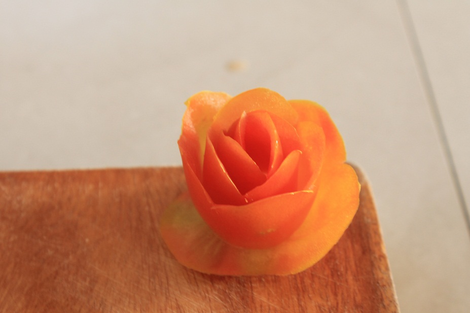 Típico rollito vietnamita, con alma de gamba, fideos, cerdo cocido, menta, tiritas de tortilla, lechuga y brotes de soja. La flor está hecha con amor y piel de tomate…