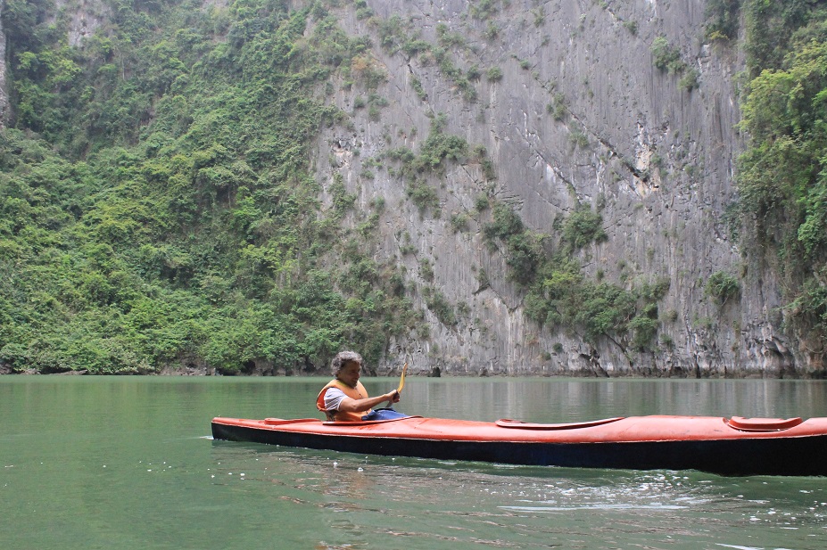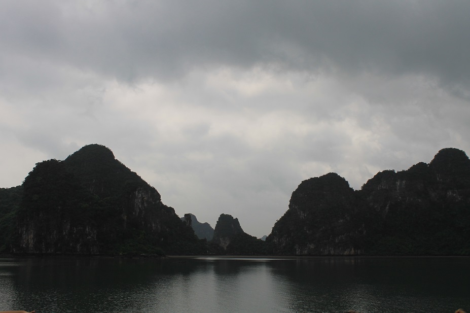 Llegada a Hanoi. Me alojé en el barrio viejo, locura de cafés, restaurantes y extranjeros. No me gustó mucho, fundamentalmente por este último hecho, porque hay extranjeros que voy conociendo y que adoro, ya lo sabéis, pero los de aquí son un tanto borrachos y fiesteros, y hacen mucho ruido. Así que, después de un par de días, decidí huir. Contraté una excursión a Halong Bay, una especia de bahía de caprichosas formas geológicas. Cinco horas de bus y a un barco que te lleva a dar un paseo por la misma…