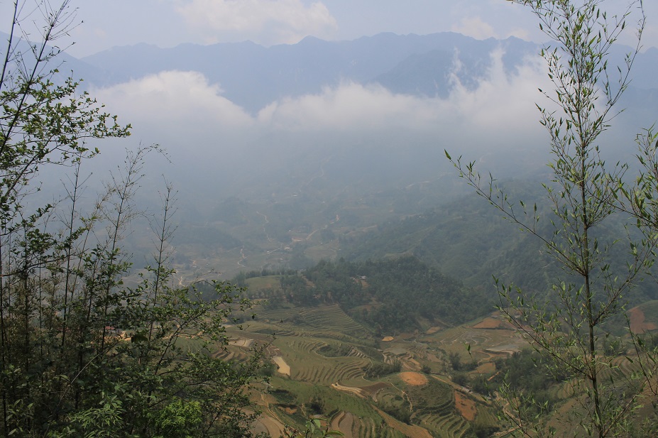 Llegué a Lao Cai relativamente descansado. Esta ciudad es la última de Vietnam antes de llegar a China, y yo tenía pensado pasar a Yunnan por aquí antes de que Chris se ofreciera a hacer ese viaje conmigo algún día, así que me hizo ilusión llegar. Nuevo bus y una hora de viaje hasta Sapa. Lao Cai, 90 metros sobre el nivel del mar. Sapa 1.420. La carretera es bonita. Llegada al hotel donde iba a pasar no esa noche, sino la siguiente. Desayuno, ducha, reparto de cargas en las mochilas y comienzo de un trekking de 14km por los alrededores.