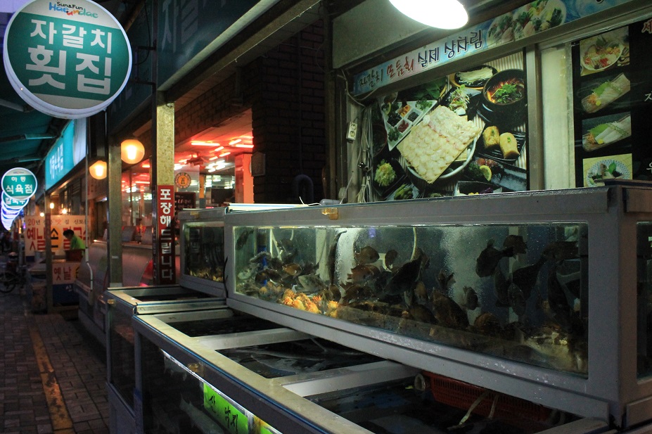 Pero lo peor, como de costumbre por aquí, fue la comida. Mucho pez, mucho marisco y cosas peores. Lo único que se salvaba era la estética, aunque a veces ni eso…