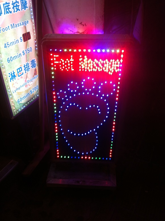 Y si te sigues acercando, puedes apreciar detalles que se pueden escapar si alguien no te los explica. En Asia son muy populares los masajes de pies. Se cree que todo comienza y termina en ellos, así que un masaje en esta zona tiene su importancia y dificultad. Me hizo gracia esto que me contaron, aunque no sé si será cierto. Aquí van dos fotos prometiendo dicho masaje…