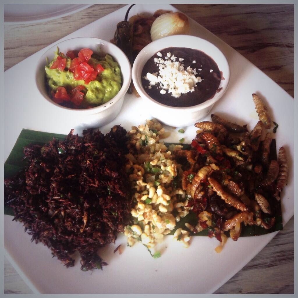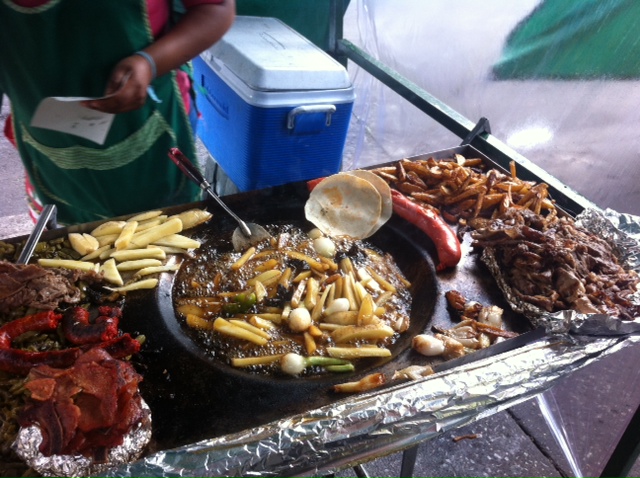 De derecha a izquierda, gusanos, escamoles (huevos de hormiga) y chapulines (grillos, siendo el más famoso de los mismos el Chapulín colorado). Ninguna de estas carísimas viandas emocionaron mi paladar, aspecto que hizo feliz a Sofía que dio buena cuenta de todas ellas. Además se llevó a casa una cajita en forma de trofeo con los restos de las mismas. Y es que yo, soy más de los alimentos del pueblo a pie de calle, ya sabéis…