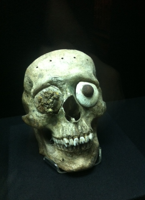 Bueno venga, os dejo una foto de cerca de esas calaveras que me gustaron bastante y un letrero explicativo acorde con el elemento en cuestión…