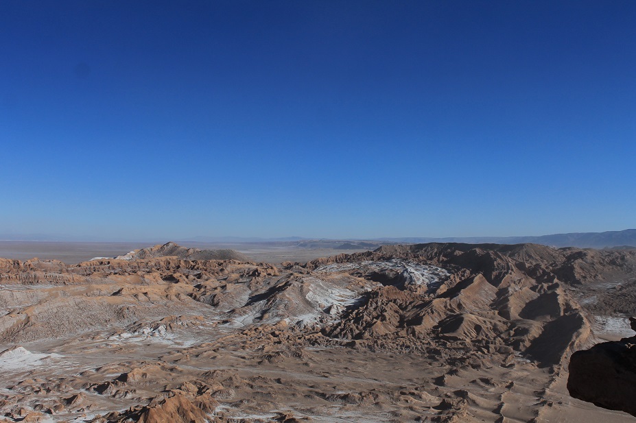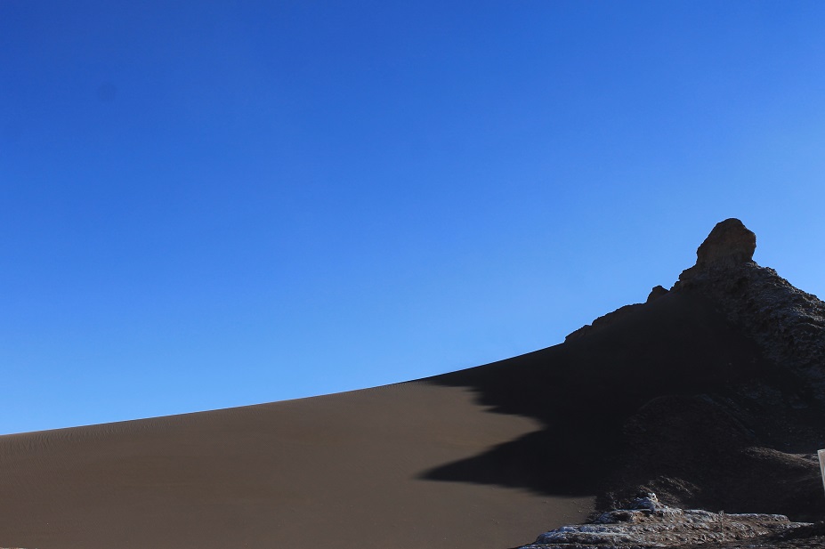 La pequeña jirafa de la izquierda se llama llama y son bastante comunes por aquí. Al fin y al cabo estaba a menos de 40 km de Bolivia. El temporal de nubes, que no de viento, remitía, así que contraté dos actividades: una visita a los cercanos valles de la muerte y de la luna y un curso de constelaciones del hemisferio sur en un observatorio cercano. El nombre de los valles es bastante apropiado y, otra vez, uno imagina a Moisés y su prole vagando 40 años por sitios así…